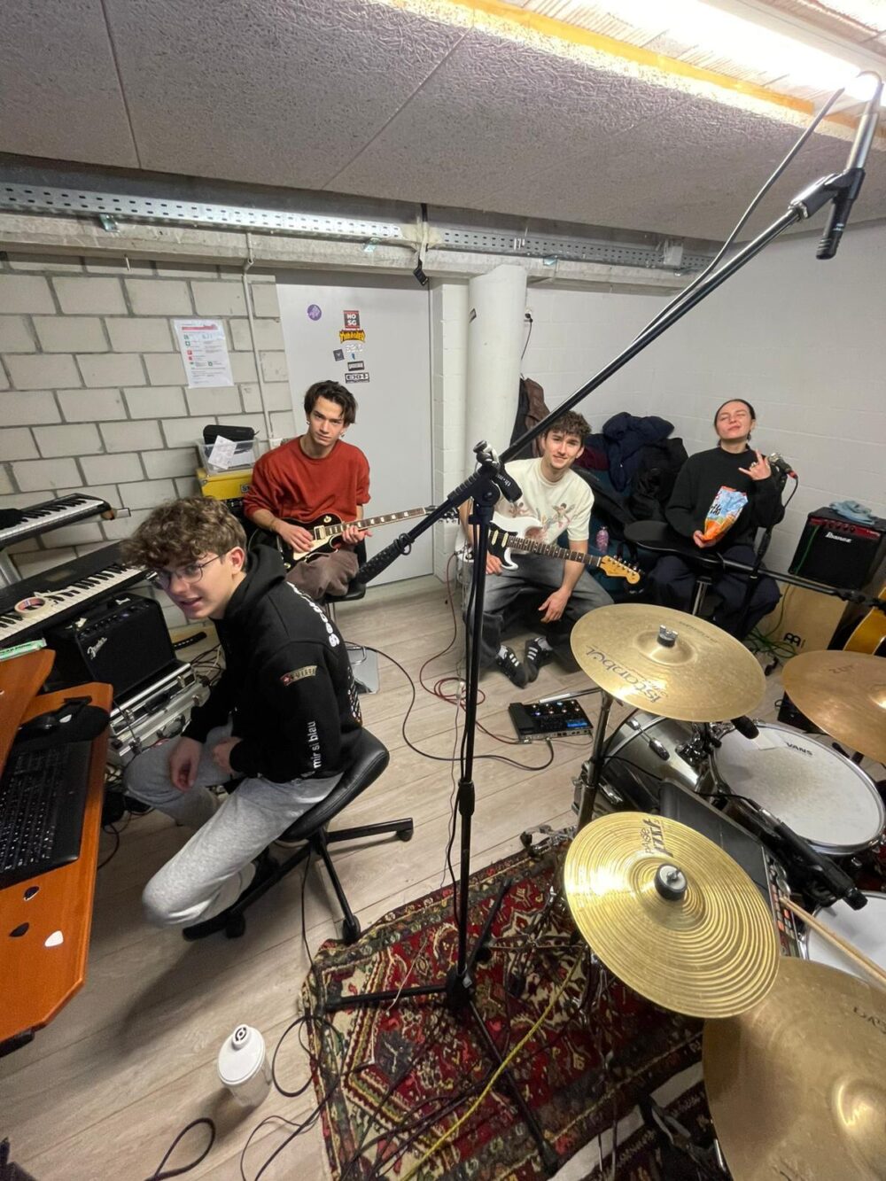 Seit November ist die Band Floor Fifteen im Untergeschoss am Proben (Foto). Weiterhin ist die Gruppe RYŪ wöchentlich im Spiegelraum am Hip-Hop tanzen. Ab Januar findet im Mehrzweckraum monatlich der Elch-Treff (Eltern-Chend-Treff) für Kinder von 2 bis 5 Jahren und deren Bezugspersonen statt. Das sind nur drei Beispiele von rund 15 dauerhaften Nutzungen. Dazu kommen einzelne Veranstaltungen und Partys vor allem am Wochenende.